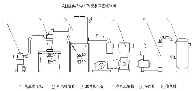 六、AB系列氮氣保護(hù)系統(tǒng)氣流磨流程圖: