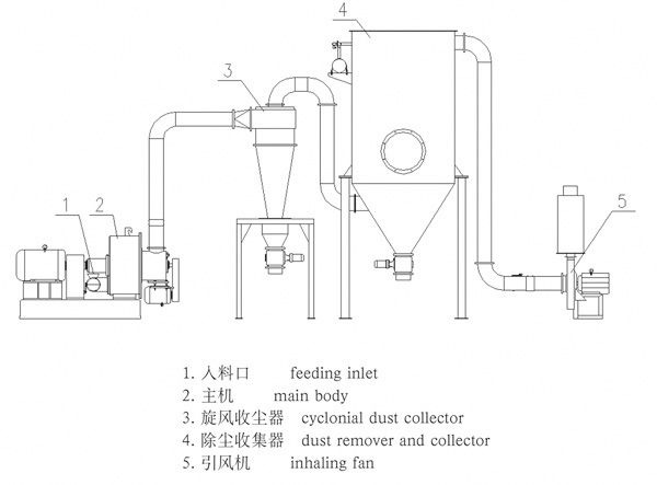 由定量喂料系統(tǒng)把物料輸送到粉碎腔內(nèi),物料在高速旋轉(zhuǎn)的轉(zhuǎn)子與齒襯的定子之間受到?jīng)_擊和剪切,粉碎后的物料在氣流的帶動下進入分級區(qū),合格的物料通過旋風和除塵器收集,不合格的物料重新返回到粉碎區(qū)進行粉碎,特殊的設計使物料充分的分散,充分的粉碎,節(jié)約了粉碎能,提高了粉碎效率。