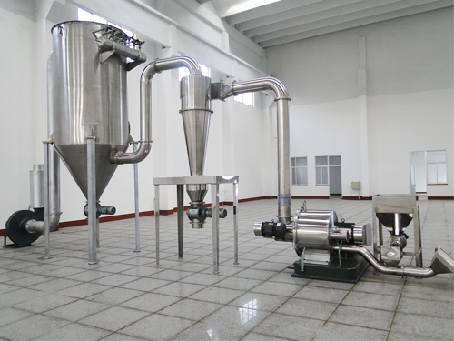 本機采用自動喂料、粉碎、分級一體化形式,粉碎、分級一次性完成。設備結(jié)構(gòu)簡單,占地空間小。
