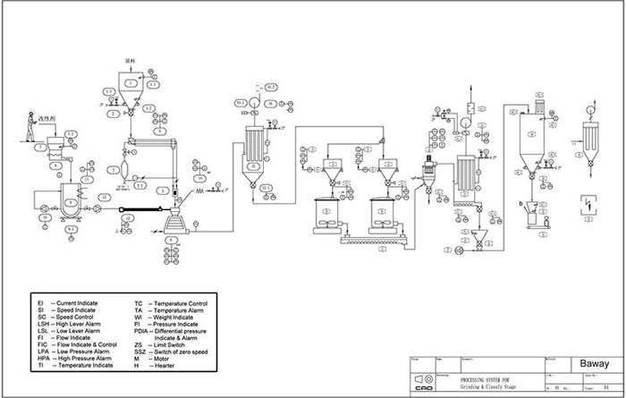 粉體表面改性是利用物理、化學、機械等方法對粉體表面進行處理,根據(jù)應用需求有目的改變粉體材料表面物理化學性質(zhì),以滿足現(xiàn)代新材料、新工藝和新技術(shù)的發(fā)展。物料由進料系統(tǒng)進入改性機內(nèi),預熱后的改性藥劑經(jīng)計量泵噴霧加入。進入改性機的物料經(jīng)均勻打散分散后與霧化的藥劑相互混合,同時利用系統(tǒng)的高溫完成藥劑對粉體的表面包覆改性,成品由后端的負壓收集系統(tǒng)收集。